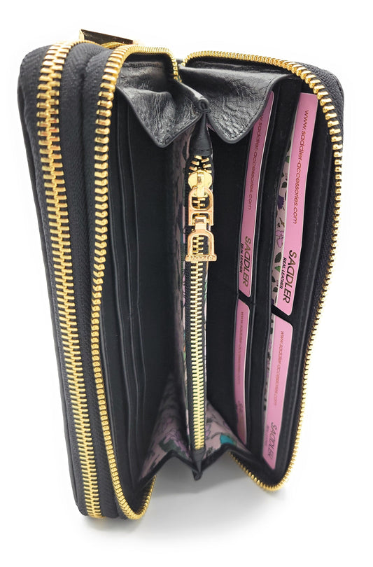 SADDLER WILLOW Real Leather Designer RFID Double Zip Purse & Phone Holder | Gift Boxed